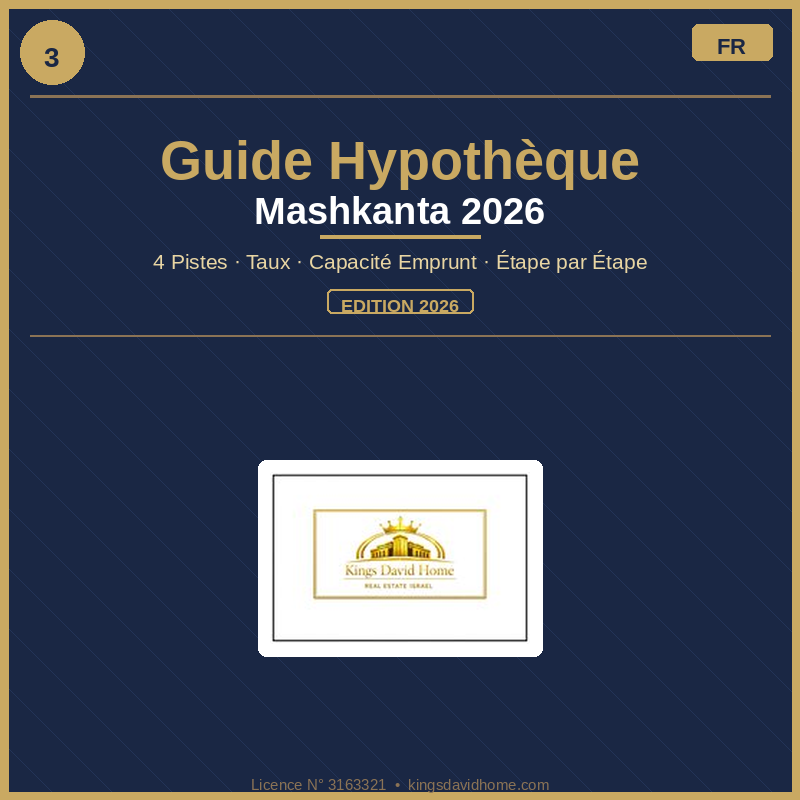 Le guide complet du système hypothécaire israélien (Mashkanta) pour les acheteurs internationaux francophones. Les 4 pistes hypothécaires expliquées, taux 2026 actuels, stratégies de combinaison de pistes, calculateur de capacité d'emprunt, tableaux de mensualités et processus de demande étape par étape. Règles spéciales acheteurs étrangers, assurances obligatoires, glossaire hébreu-français inclus. Téléchargement PDF instantané.