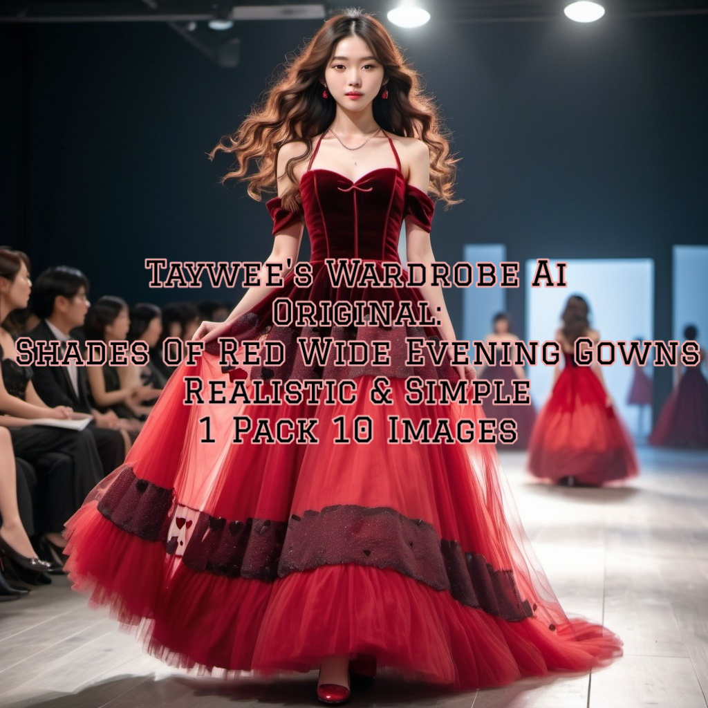 Taywee's Wardrobe Ai. Original: Shades Of Red Wide Evening Gowns Realistic & Simple. (Digital Files In Raster Format) Click To Buy. Price in USD.