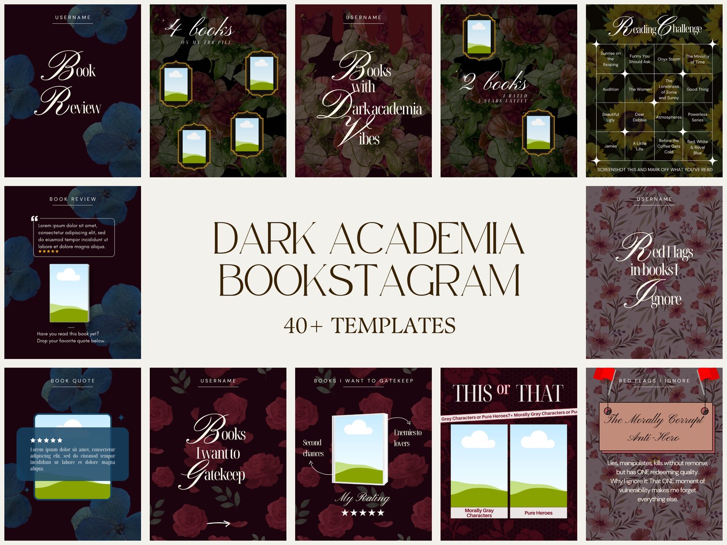 Transform your bookstagram into a dark academia aesthetic dream with this complete social media template bundle! Perfect for book bloggers, BookTok creators, and literature enthusiasts who want to elevate their Instagram feed with moody, scholarly vibes.