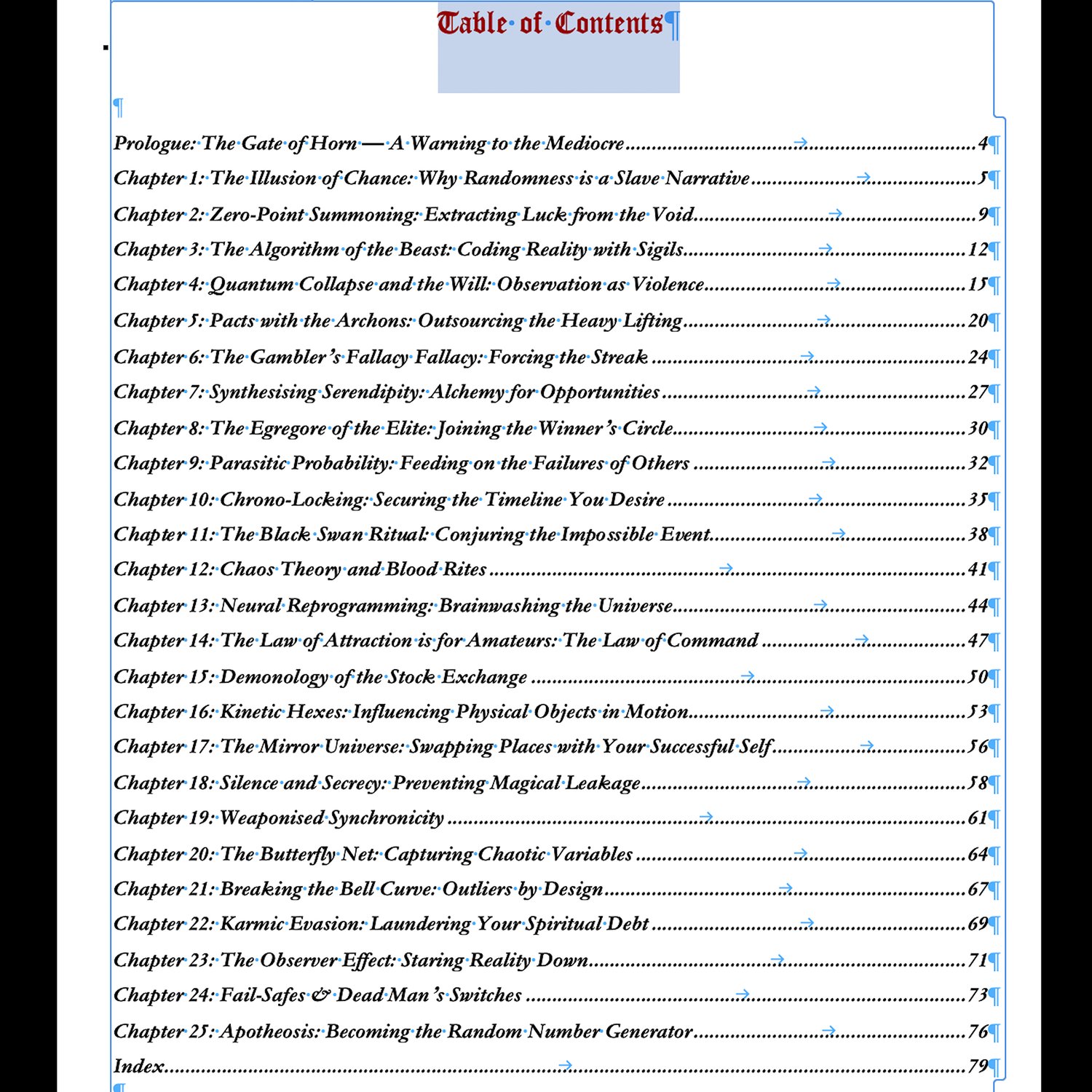 The Probability Grimoire is a bold, unconventional guide to understanding — and influencing — the hidden patterns that shape outcomes in your life. Blending ideas from psychology, perception, and chaos magick, this book explores how “chance” may be far more flexible than you’ve been led to believe.