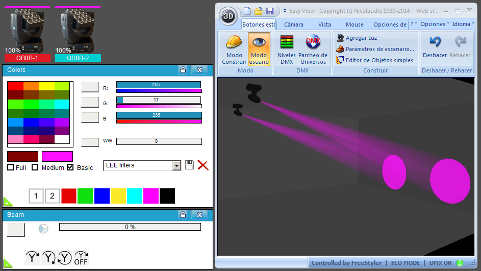 Esta Librería SSL2 está optimizada para trabajar con Magic 3d Easy View. Es decir para ver una representación 3D de las secuencias que estemos realizando con Freestyler, QLC+ o cualquier otro soft que se conecte con Magic 3d.