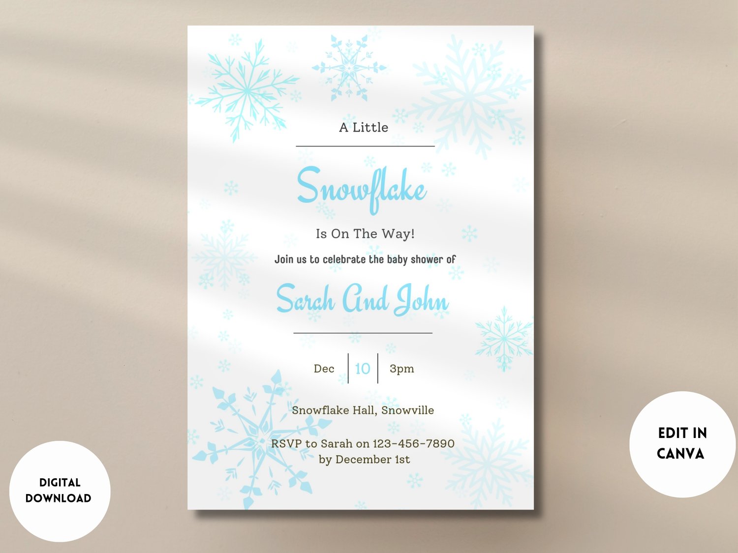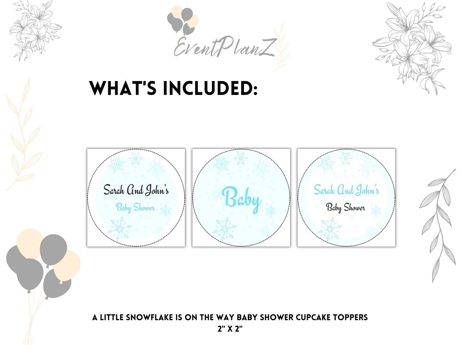 A Little Snowflake Is On The Way Baby Shower Cupcake Toppers | Printable Winter Gender Reveal Party Favors | Canva Template | Christmas