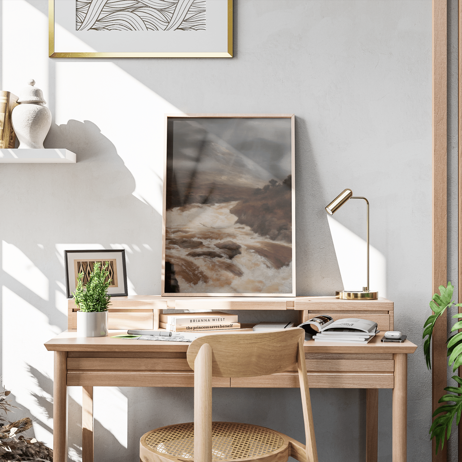 Vintage Water Fall Landscape, Nostalgic Nature, Cool Nature, Rustic natural Landscape, Painting.