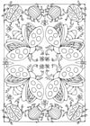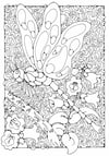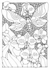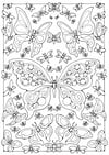 Original pictures of (mostly) imaginary butterflies, beetles and other bugs, with strong outlines for ease of colouring.