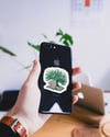 "A stunning cartoon illustration of a green book that merges into a vibrant, flourishing minimalistic tree symbolizing life's abundance"