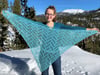 Worked from the point up Aquamarine Herringbone is a versatile lace shawl that can be made to suit nearly any gauge or amount of yarn. Simply follow the ending instructions whenever the shawl has reached the desired size.