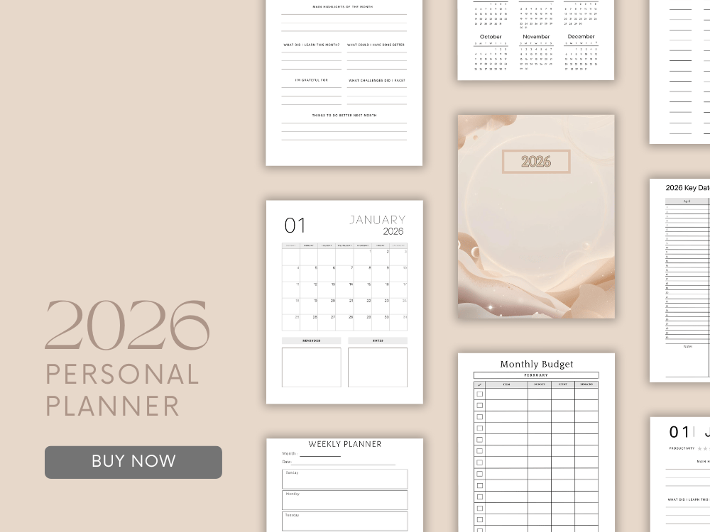 Step into 2026 feeling organized, focused, and grounded. This minimalist 2026 Planner is designed for those who crave simplicity, structure, and space to breathe, without overwhelming layouts or unnecessary clutter.