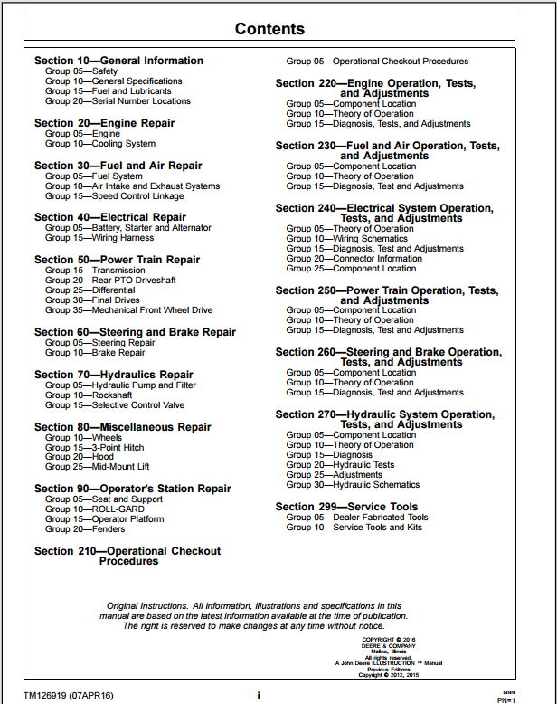 2016 John Deere 1023E 1025R 1026R Compact Utility Tractors Technical Manual Part No. TM126919