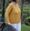 La Dijonnaise pullover is accented with winding cables at the hem, cuff and neckline. The design, with its subtle A-line shaping, modified drop shoulder and sweetheart neckline provides for a more fitted silhouette. The sweater is knit in the round from the bottom up to the armhole shaping and then worked flat to the shoulders.