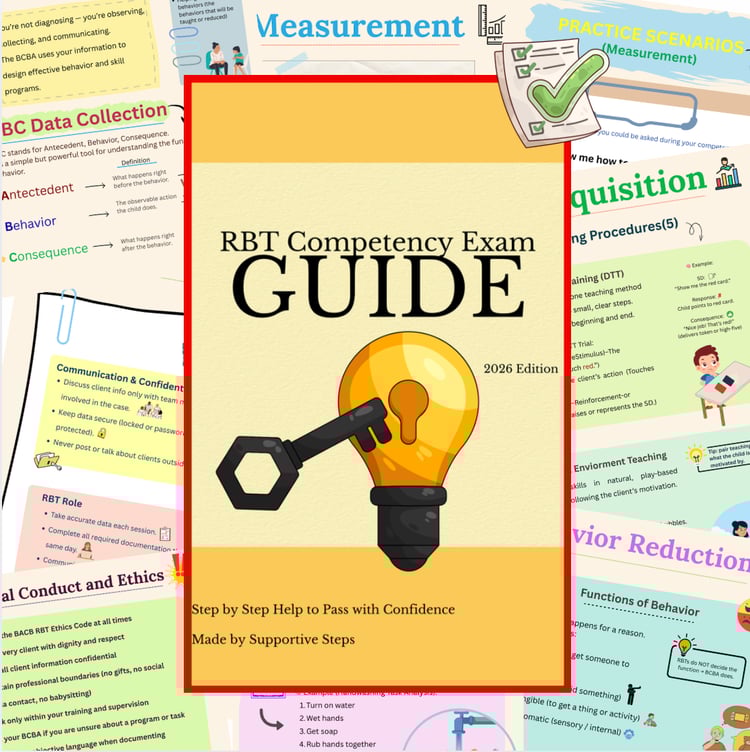 Studying for the RBT exam can feel confusing, especially when questions are presented in real-life scenarios instead of simple definitions. This workbook was created to help you practice recognizing ABA concepts the way they often appear on the exam.