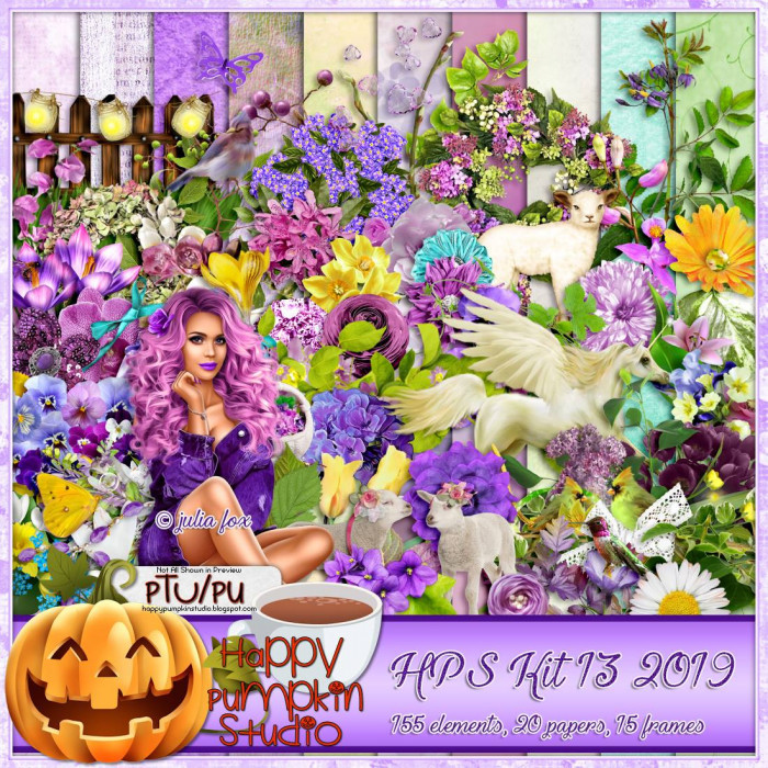 155 elements, 15 frames, 20 papers and tube ©Julia fox. Please read the inclosed text file how to credit. This kit is full of fun and will have you in a spring mood in no time