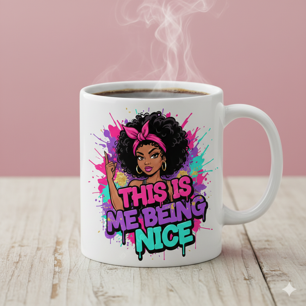 Sassy Black Girl PNG - This Is Me Being Nice - Urban Graffiti Street Art Sublimation Design - Afro Curly Hair Melanin Queen Digital Download - T-Shirt & Tumbler Wrap Graphic
