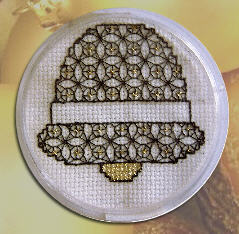 Ring in the season with this elegant bell stitched in blackwork and gold. The fill pattern is just a little more intricate, making it a peaceful challenge for confident beginners or returning stitchers.
