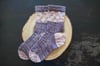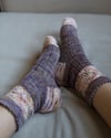 Bursting with color and texture like wisteria flowers in full spring bloom, these socks work top down in interesting sections that just fly by. They feature contrasting textures and yarns to create a springtime knitting experience you can practically smell in the air. The engaging contrast floral lace texture is easy to memorize and soothing to knit, while the ribbed leg and foot sections give a beautiful and cozy fit. The delicate stockinette cuff is sweet and adds the perfect whimsical touch for perfect socks to wear on a walk to the botanical gardens, while the hidden fold over ribbed facing on the inside achieves a snug fit. Enjoy knitting these delightful socks in your favorite yarn colorway to create the most perfect floral socks for you.