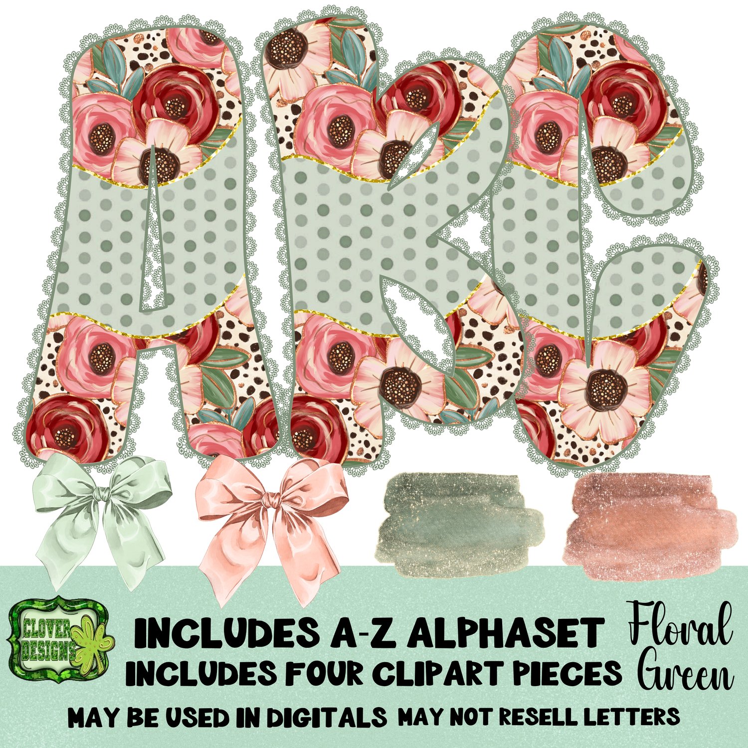 Floral Green Alphaset Pngs plus 4 clipart pngs included