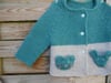C’est un basique tout simple, décoré de petites poches plaquées en forme de tête d’ourson/de chien/de chat/de souris qui donne à ce vêtement un niveau de mignonnitude absolue. L’encolure est finie avec un i-Cord, les bordures avec une maille lisière glissée.
