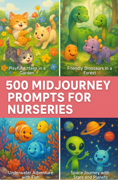 500 Midjourney Nursery Prompts | Huge Collection of Cute & Creative AI Art Ideas for Kids – Animals, Dinosaurs, Ocean, Space & More