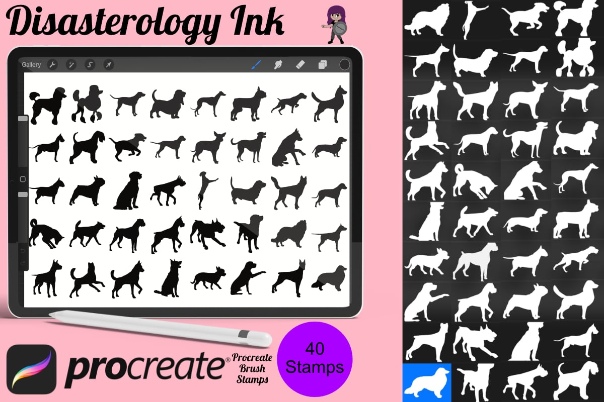 Dog Silhouette Procreate Brush Stamp Set 2, 40 stamps