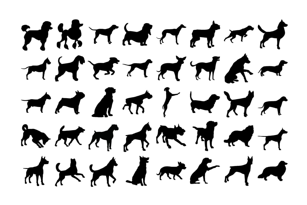 Dog Silhouette Procreate Brush Stamp Set 2, 40 dog stamps