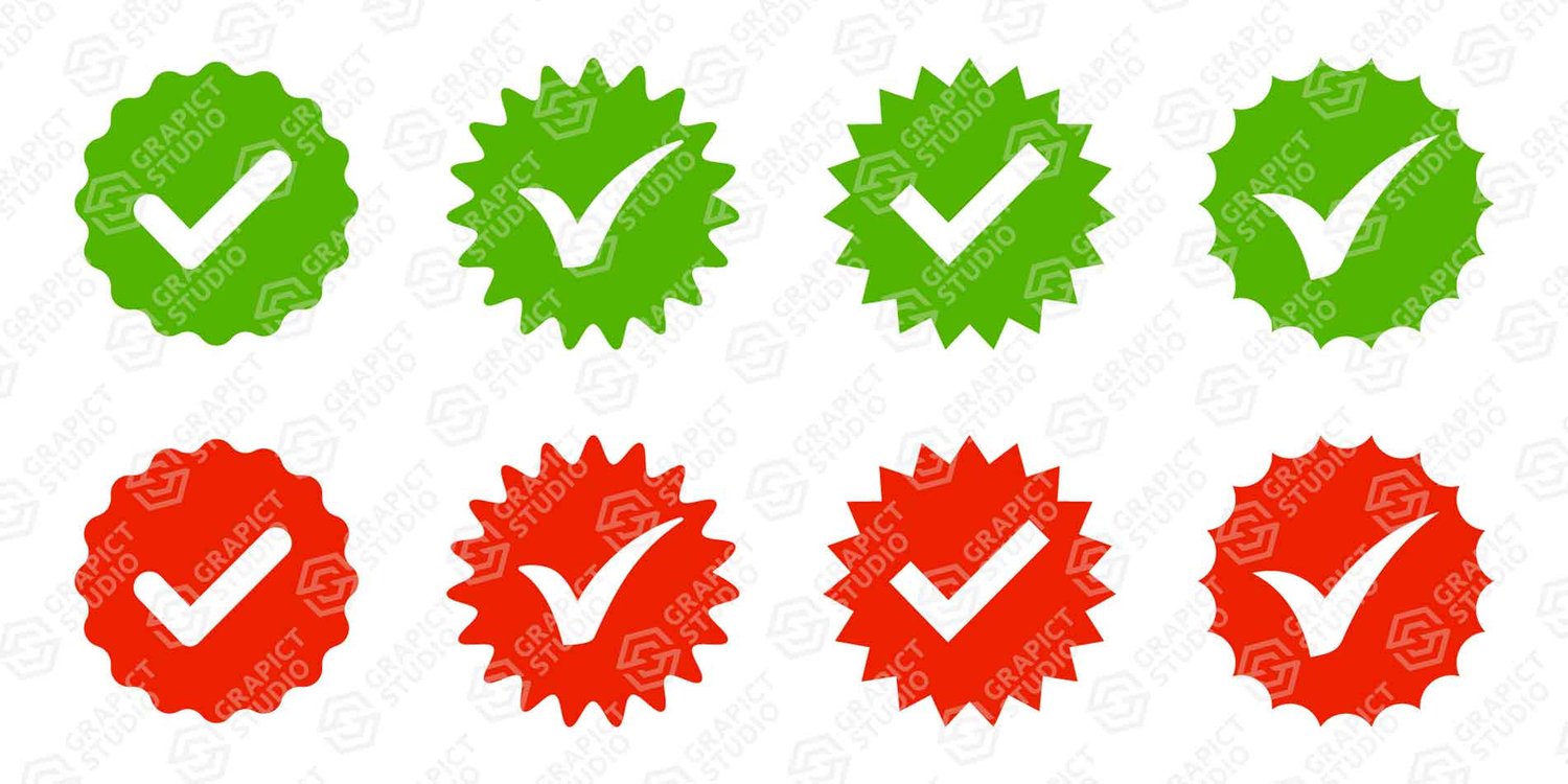 Checkmark approval icon set, design element suitable for websites, print design or app. Vector clipart image, graphic design element.