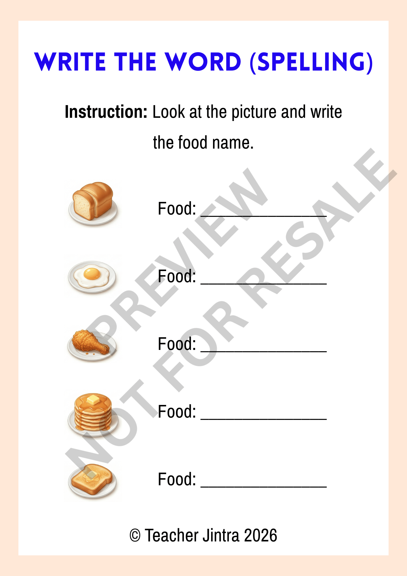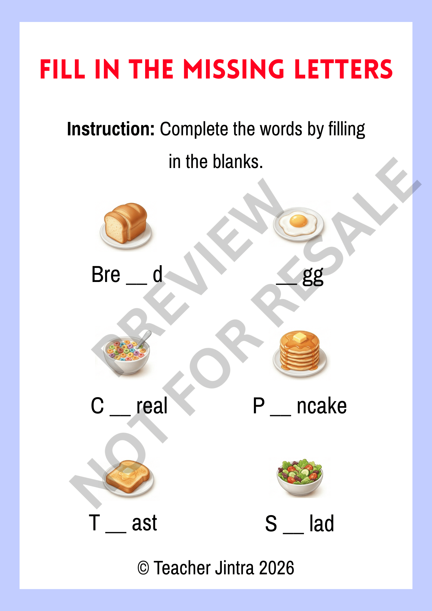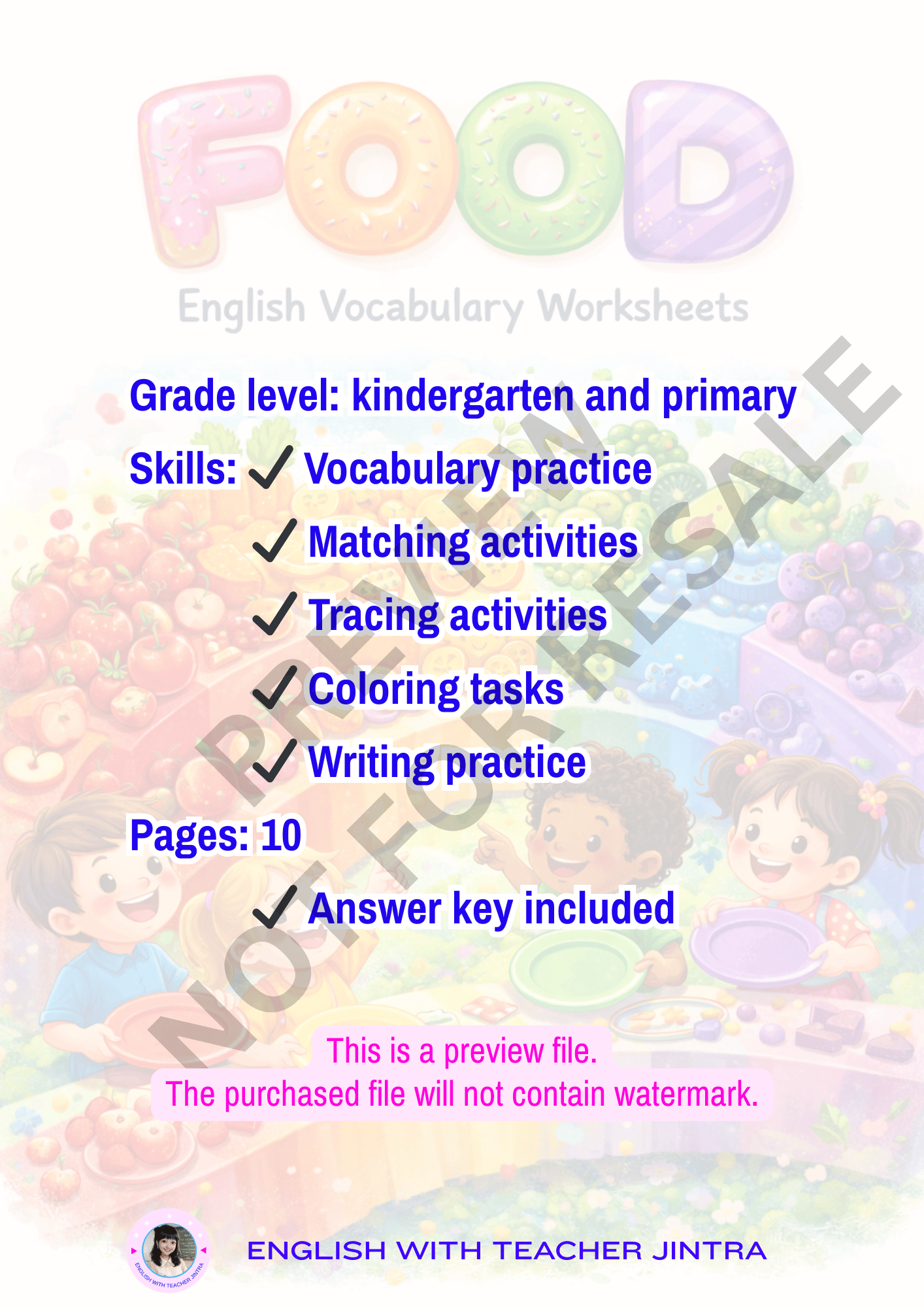 Food Vocabulary Worksheets | ESL Activities for Kindergarten & Primary