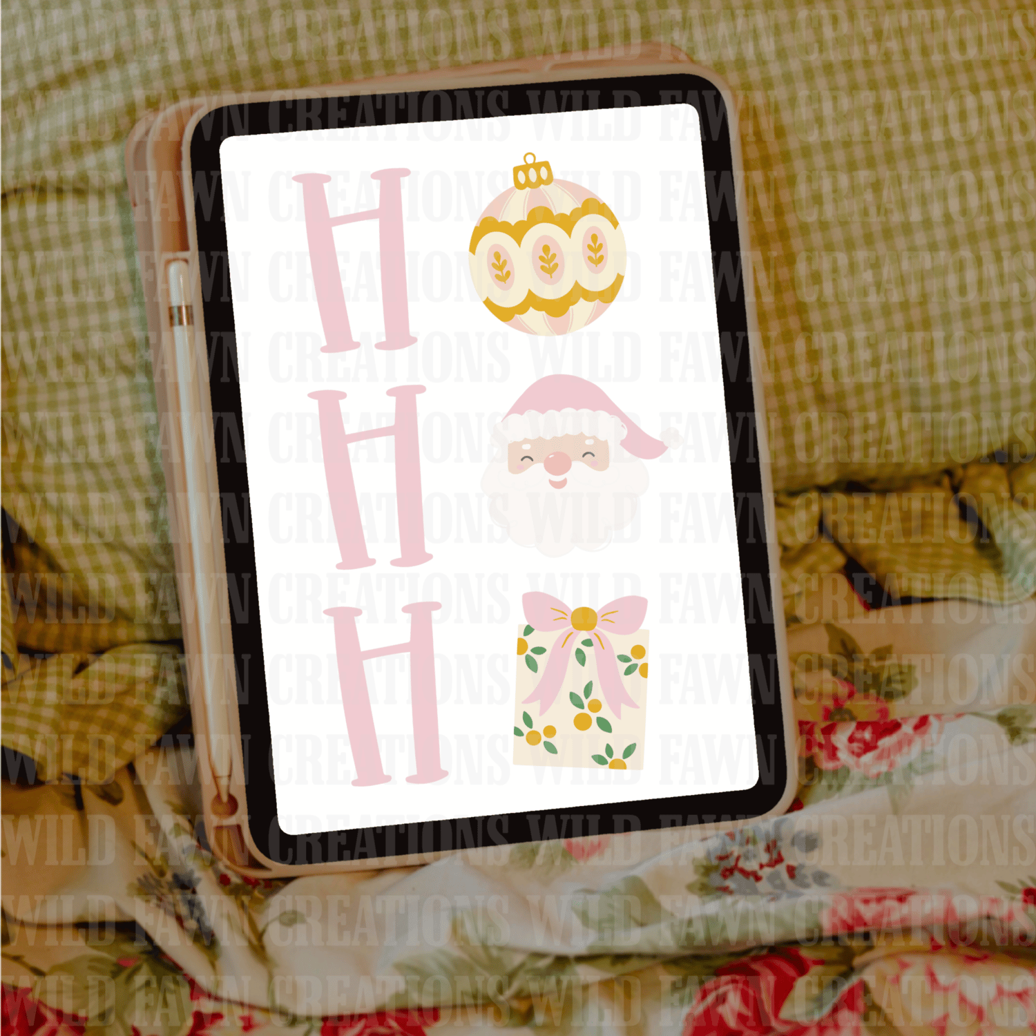 Pink Christmas Ho Ho Ho PNG | Santa Ornament & Gift | Digital Design Download