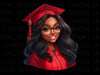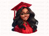 Black American Cartoon Woman Transparent PNG Illustration | Red Graduation Cap & Gown and Glasses Transparent PNG Design, Cartoon | png designs with Transparent Background, 2024 Graduation