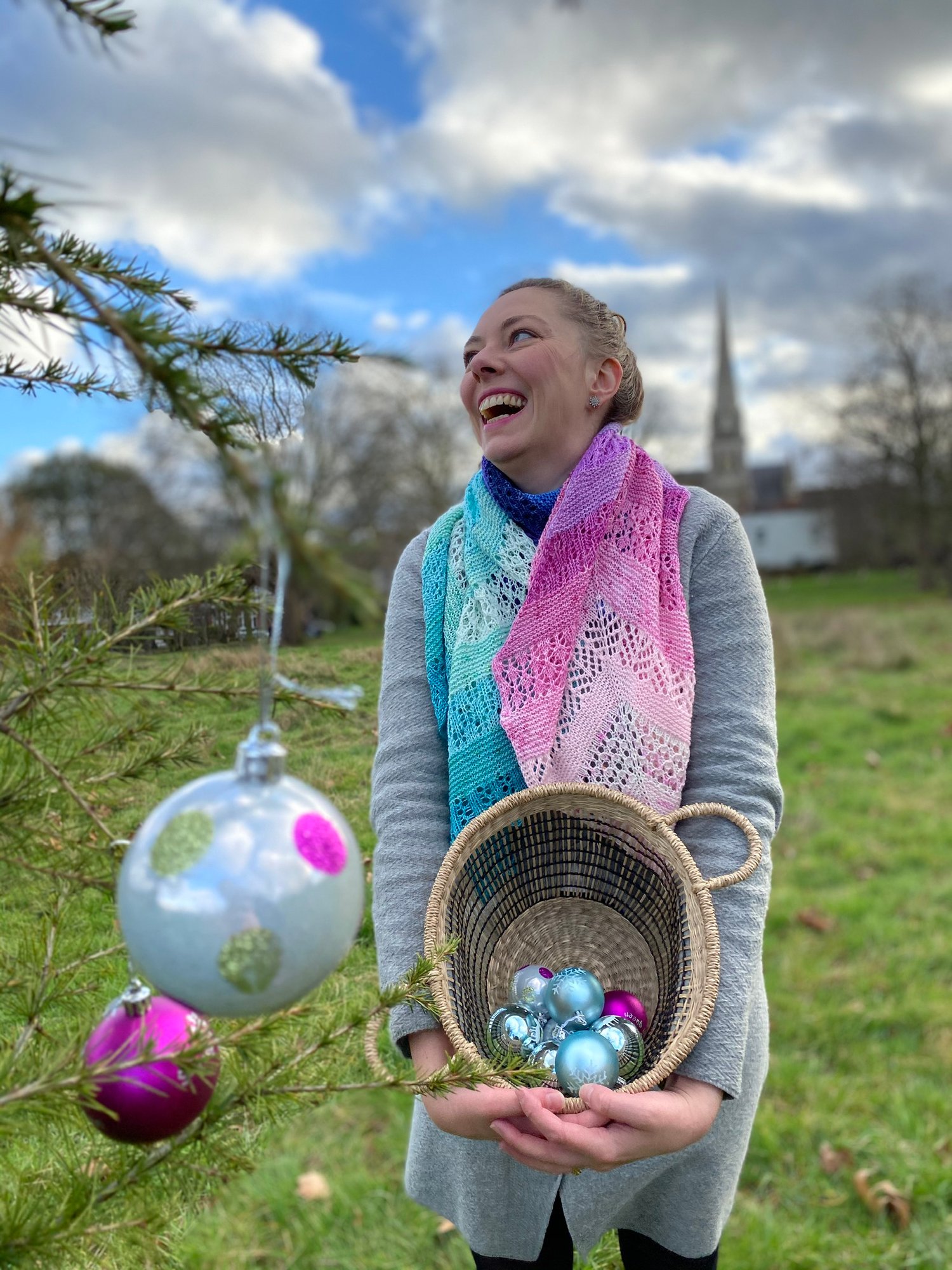 Shawl/Wrap pattern written for the Giddy Yarns Advent calendar 2019 but can be made in any 4-ply/fingering yarn. The shawl looks great in a single colour, gradient or stripes in various colours. The pattern is mainly in garter stitch mixed with a bit of lace, no need to be an advanced knitter. This wrap is great for trying out new lace patterns, each of the patterns are both written and charted.