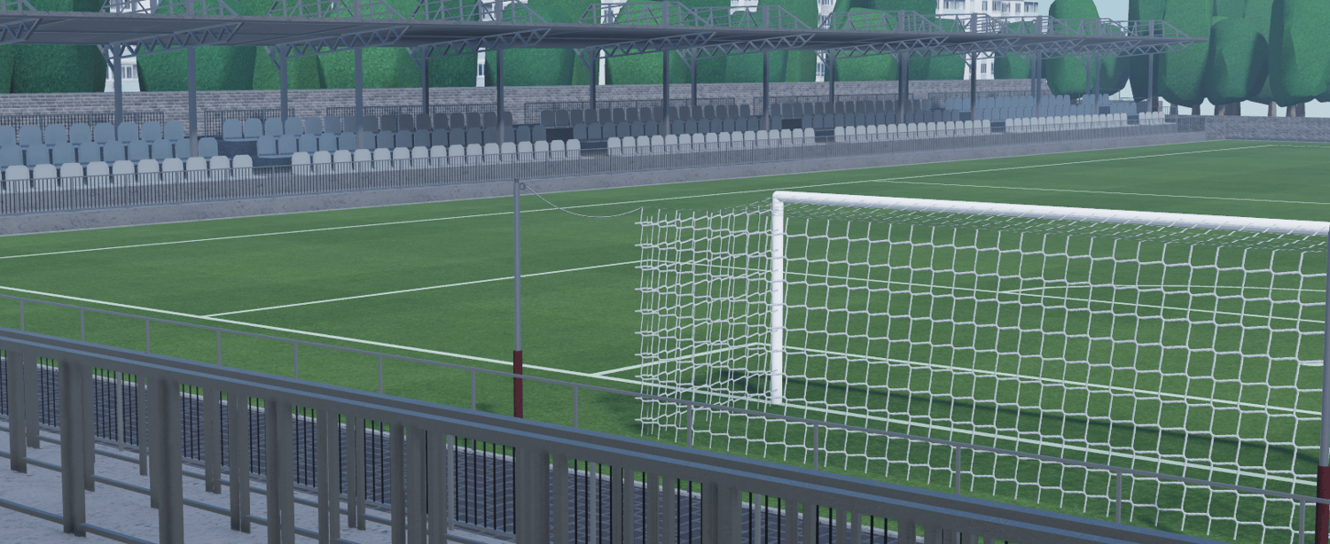 > This is a fictional football stadium that spans a massive 480 x 380 studs. The map includes plenty of seating areas for fans, along with a spacious entrance area. It also features dedicated match officials' zones, including separate home and away locker rooms for the teams.