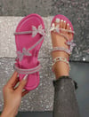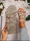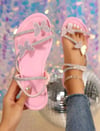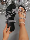 Colorful Rhinestone Bow Tie Multi-Strap Dual Wear Women's Summer/Autumn Outdoor Slippers, French Fashion Silver Slides Suitable For Dates, Gatherings, Parties, Home, Casual Daily