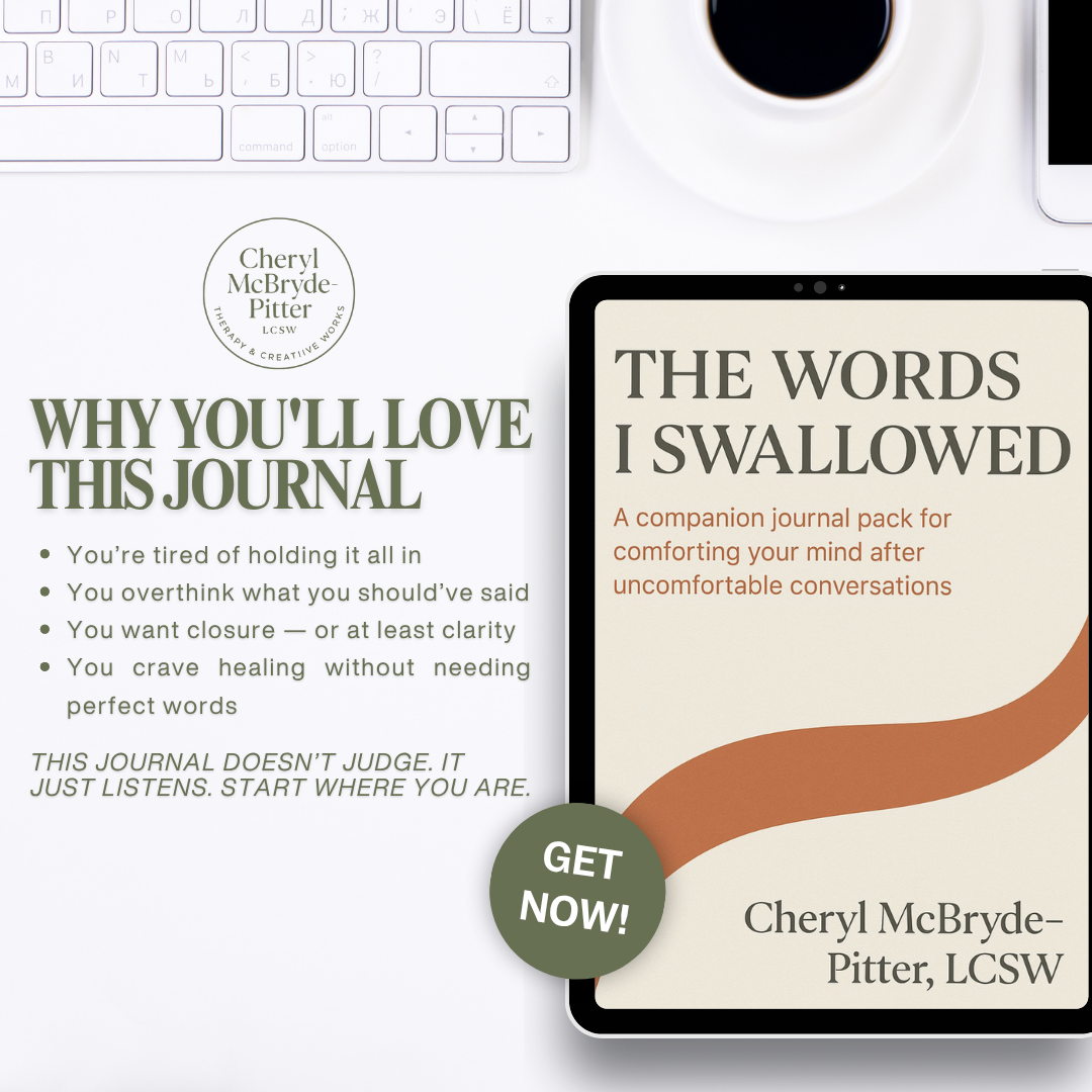 Created by trauma therapist Cheryl McBryde-Pitter, LCSW, this journal meets you where you are — mid-thought, mid-conflict, or mid-silence — and helps you move through it with clarity and care.