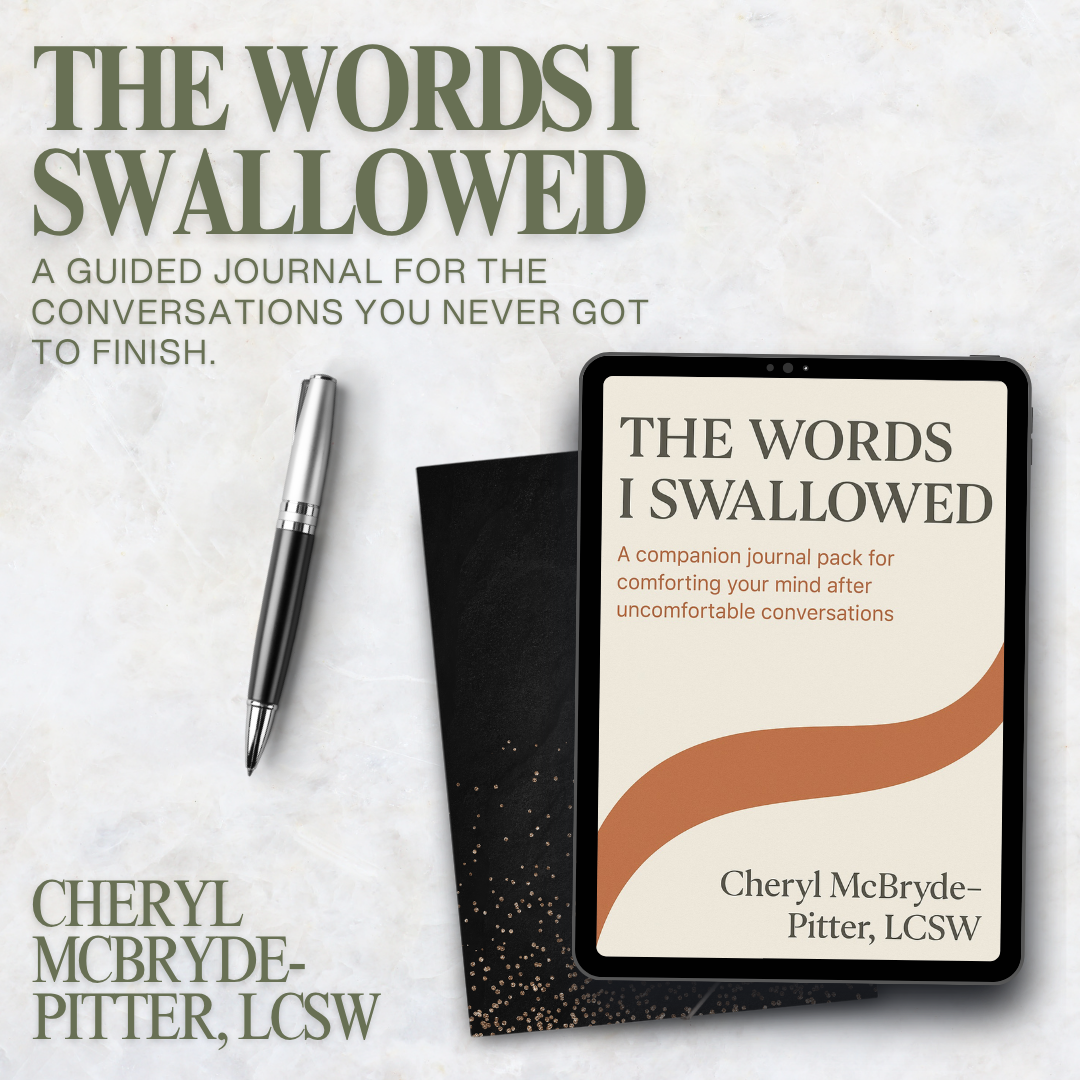 Words I Swallowed is a therapist-created journal to help you process emotions, practice hard conversations, and find the language you lost in the moment.