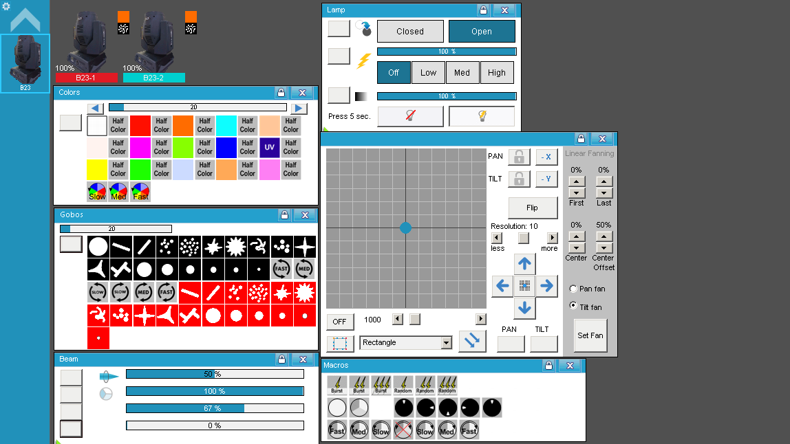 * Verifique, con este Fixture de pruebas (click), que coincidan estos canales: 10 Pan y 12 Tilt.