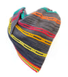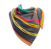 Jazz up your wardrobe with this electrifying shawl! The Electric Slide’s asymmetrical shape features rows of garter stitch interspersed with slipped stitches at staggered intervals, lighting up the shawl with bright pops of color. The shawl ends with an optional slipped-stitch edge that could also be worked as plain garter stitch.