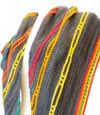The sample uses a neutral main color with five contrasting colors. Knitters might also pair a main color with a single contrasting yarn, or as many contrasting colors as one would like. This project could be a great way to stashbust any worsted weight leftovers for the stripes.