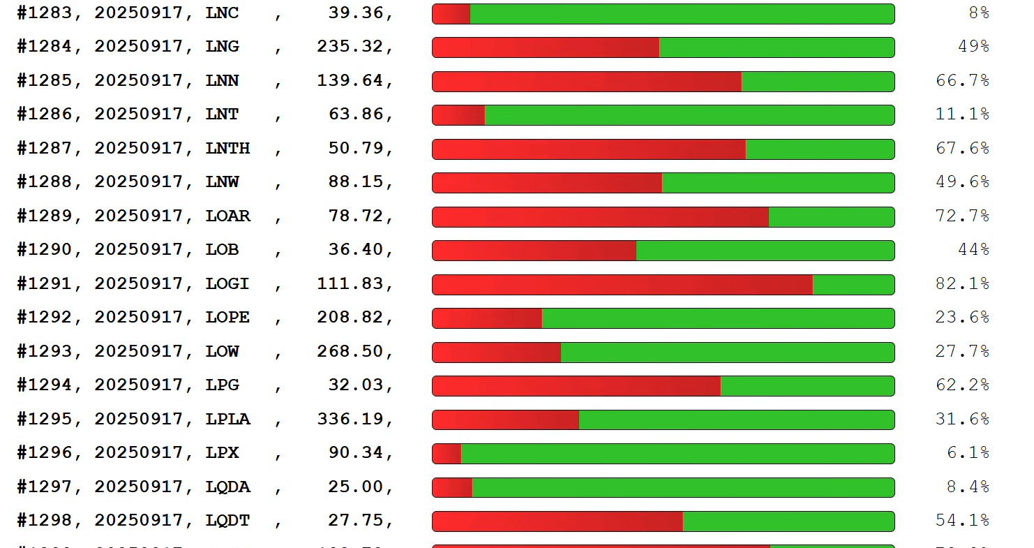 This is a video file that shows the downside and upside potential of each of more than 2000 major US stocks. This includes all the most important high-tech and popular, actively-traded stocks such as AA, AAOI, AAPL, ABNB, ADBE, AFRM, ALK, AMZN, ANET, APA, APH, ARCC, ASTS, BA, BABA, BAC, BAX, BBWI, BCS, BE, BILI, BKR, BMY, BP, BRKR, BSX, C, CARR, CCJ, CCL, CHWY, CL, CMCSA, CNC, CNQ, COIN, CPNG, CPRT, CRM, CSCO, CSX, CTRA, CTVA, CVS, DAL, DELL, DIS, DKNG, DOW, DVN, ENPH, EPD, ETHE, EXC, FCX, FHN, FTI, GLW, GME, GOOG, GOOGL, HAL, HIMS, HOOD, HPE, HPQ, INTC, INVH, IONQ, IREN, JD, KDP, KGC, KHC, KMI, KR, LI, LRCX, LULU, LUV, LYB, MCHP, MDLZ, MDT, META, MGM, MO, MP, MRK, MRNA, MRVL, MSFT, MSTR, MU, NCLH, NEE, NEM, NKE, NLY, NNE, NVO, O, OKLO, ON, ORCL, ORLY, OXY, PAAS, PANW, PDD, PEP, PFE, PINS, PLTR, PYPL, RBLX, RF, RKLB, RNA, SATS, SBUX, SCHW, SHOP, SLB, SMCI, SMR, SOFI, STM, STX, T, TECK, TFC, TGT, TOST, TSCO, TSM, TTD, TXN, U, UBER, UNH, UPS, UPST, USB, VICI, VRT, VZ, WDC, WFC, WMT, XOM and LOTS MORE, indeed 2000+ MORE!