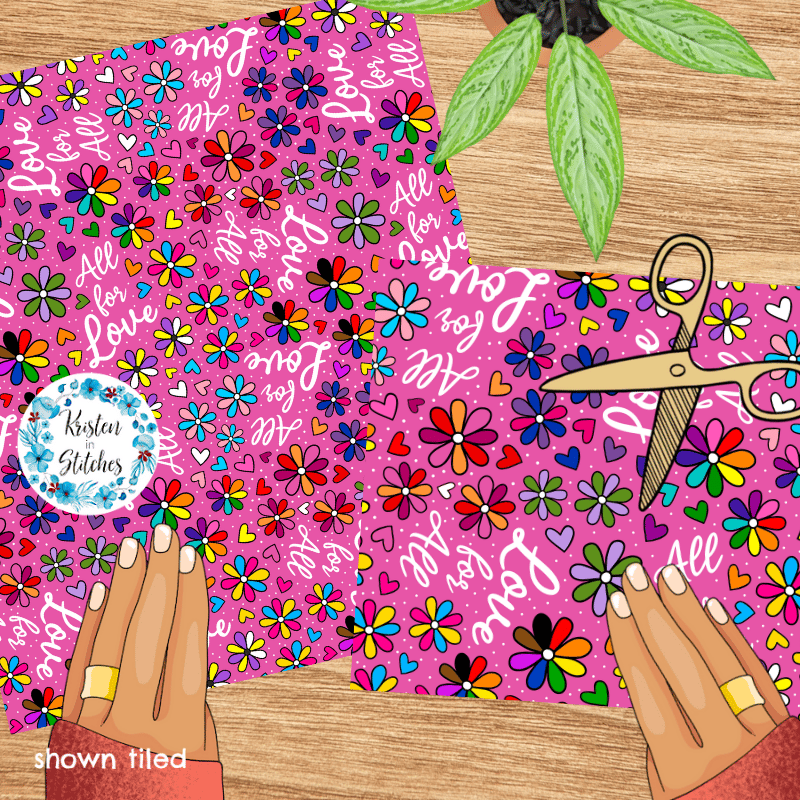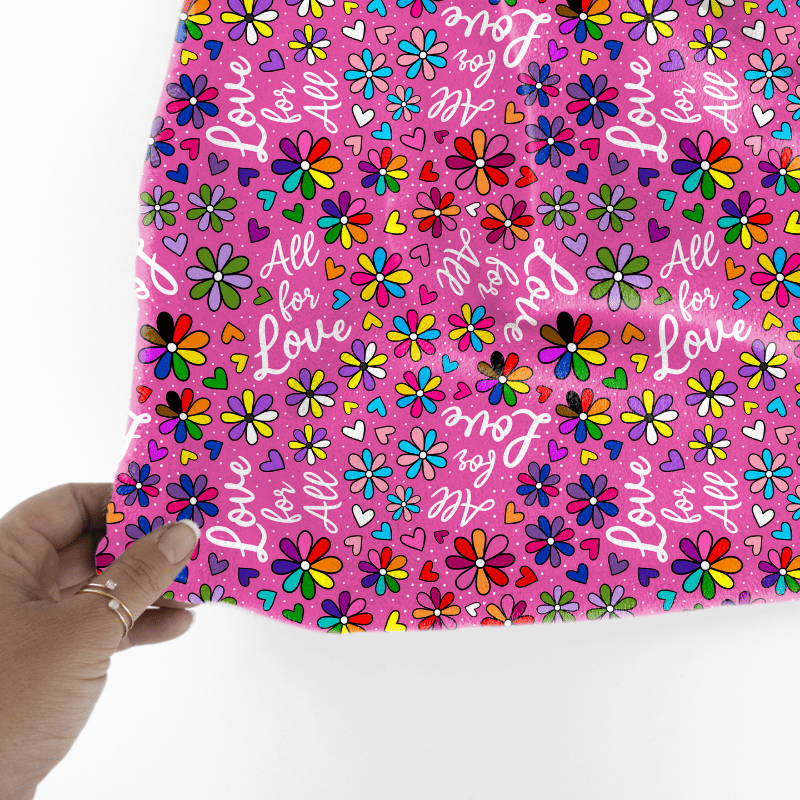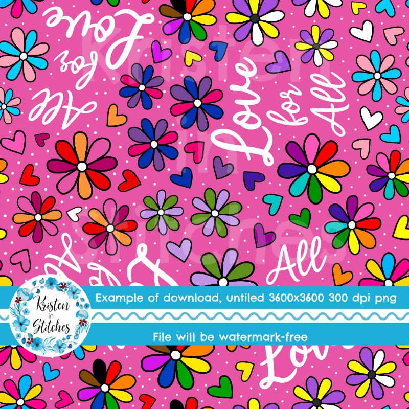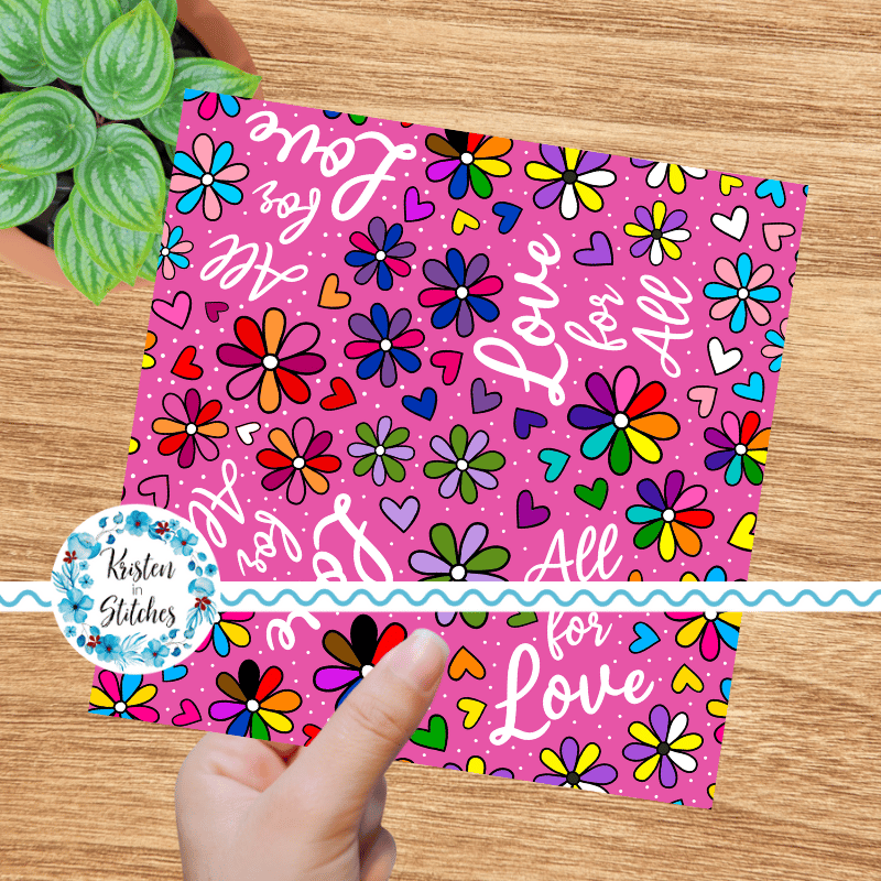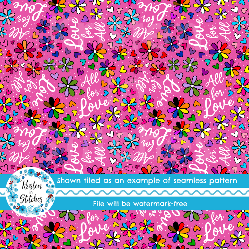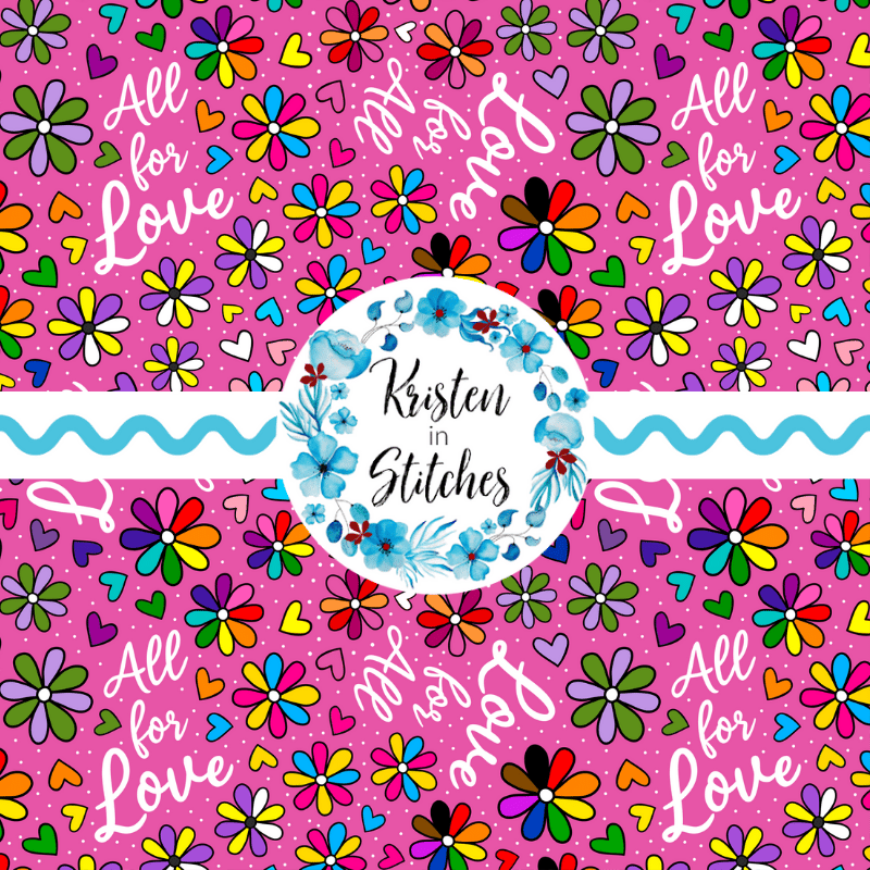 All for Love and Love for All, with daisy flowers in pride flag colors.