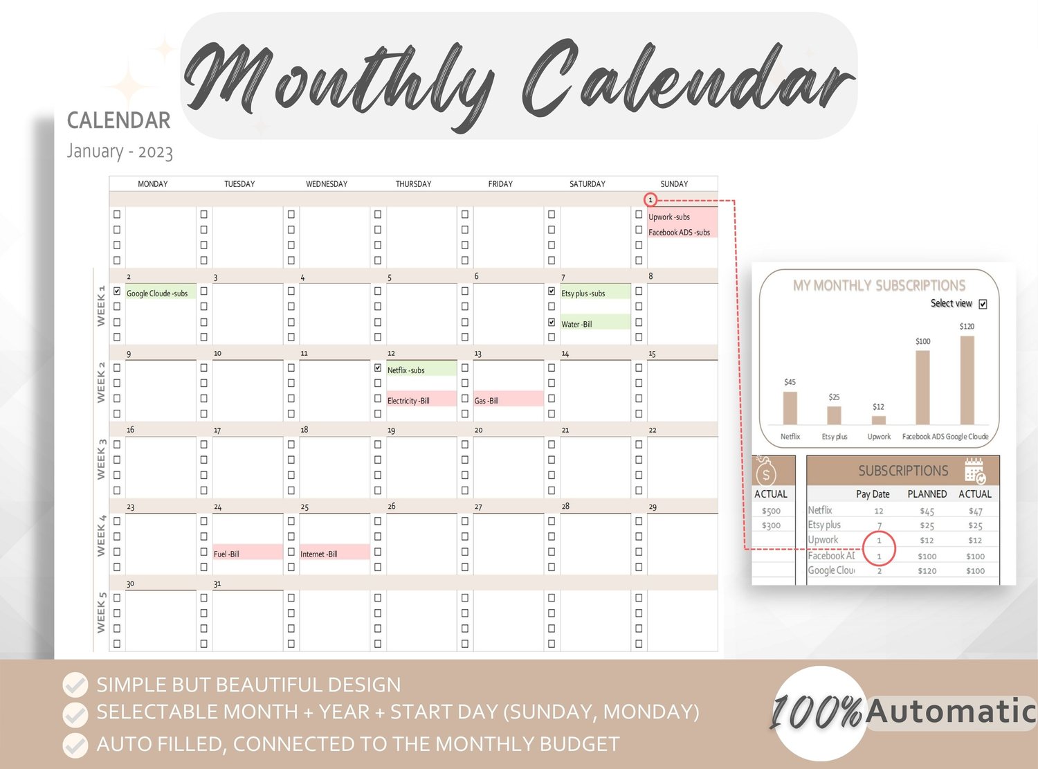 - Automatic monthly calendar summarizing your monthly bills and subscriptions💪