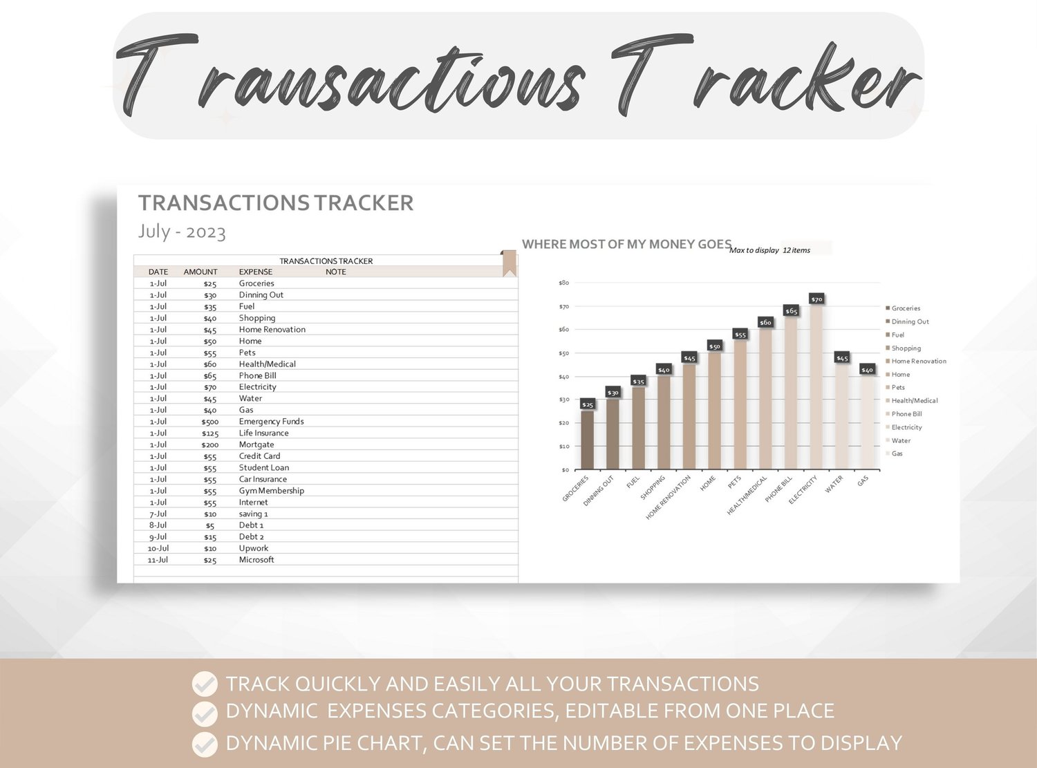 - Transactions Tracker: in which you fill your ACTUAL amounts