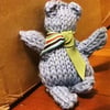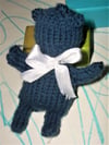 Approximately 55 yards/50 meters of machine washable sport weight or DK yarn that knits to gauge. If you knit a bigger bear than described here, you’ll need more yarn.