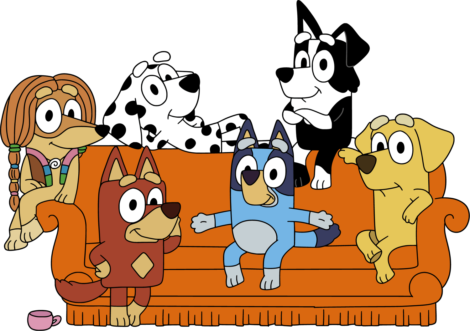 Bluey mashup - Sitting on "friends" couch PNG & SVG