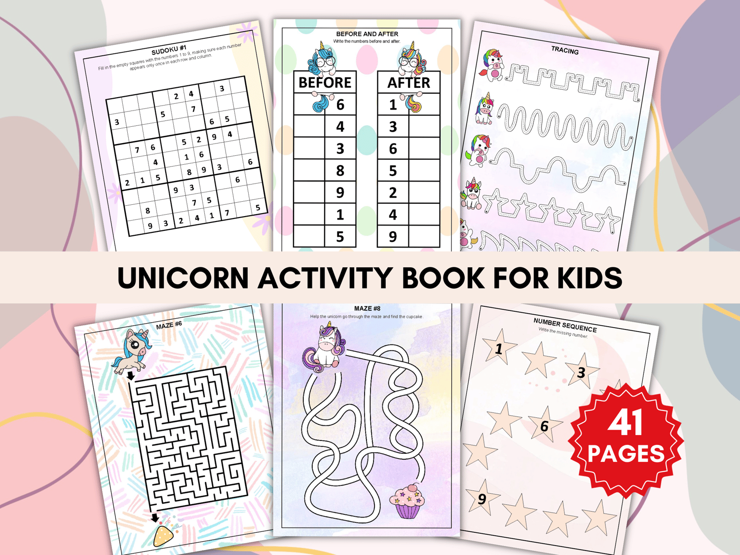Designed with adorable unicorn themes and kid-friendly challenges, this digital activity book helps children develop problem-solving and fine motor skills while having fun! 🌈