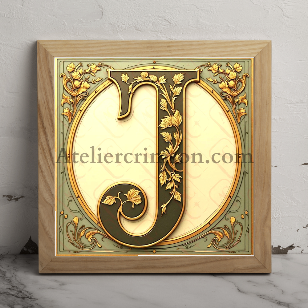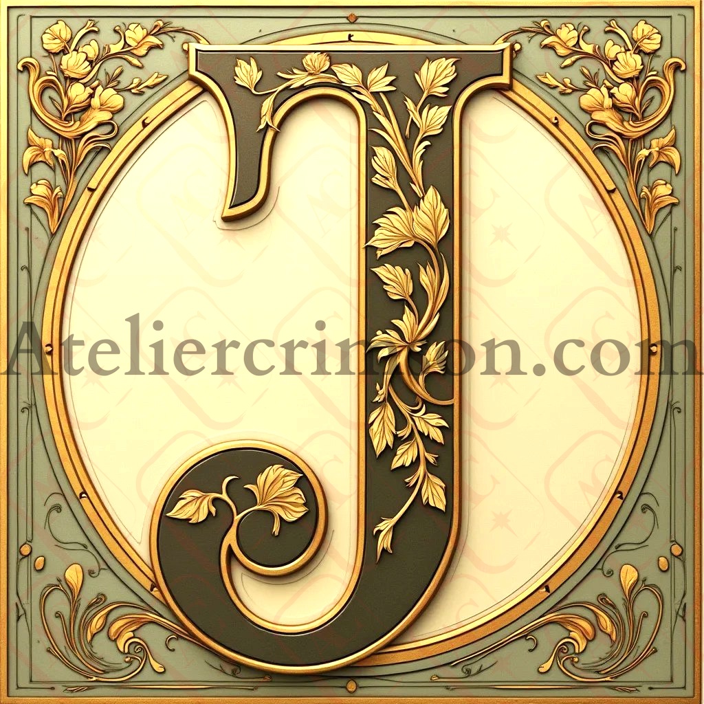 The letter J gold metal art nouveau Download Now this high quality AI-generated image, perfect for adding a touch of tranquility and creativity to any space.