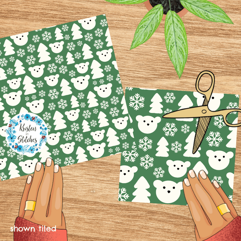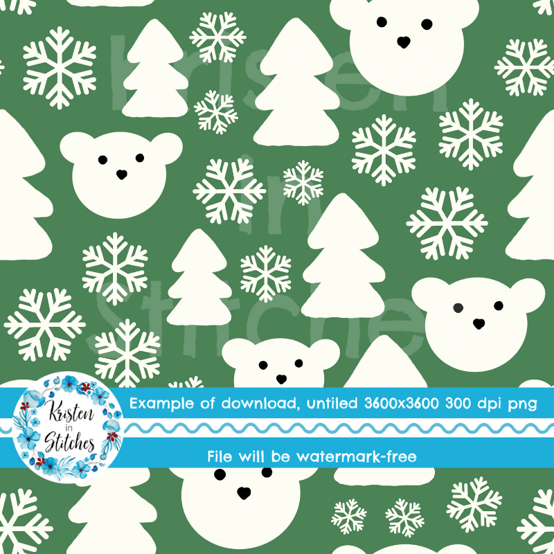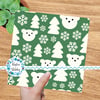 Sweet polar bear faces, pine trees and snowflakes.