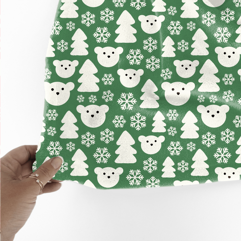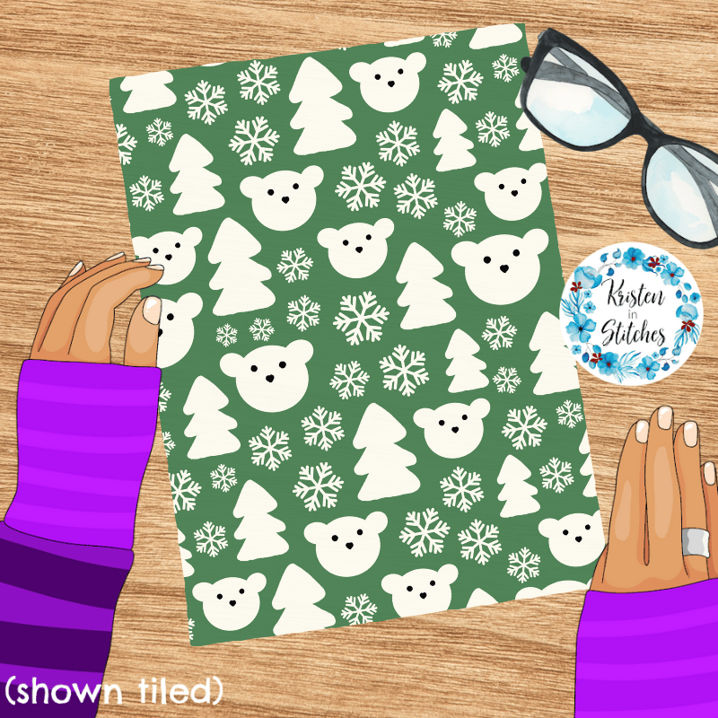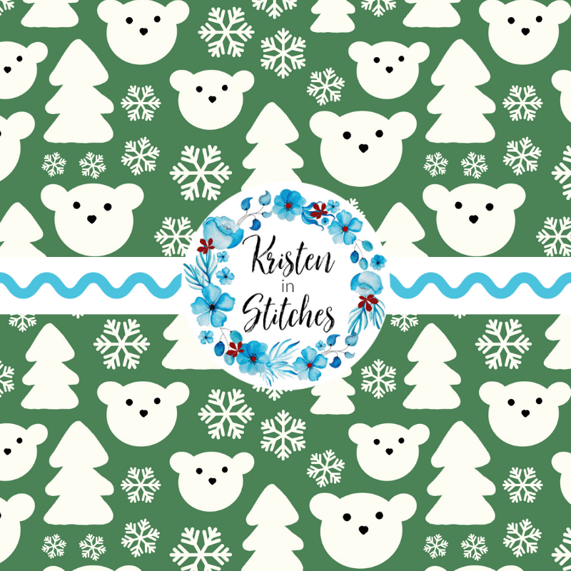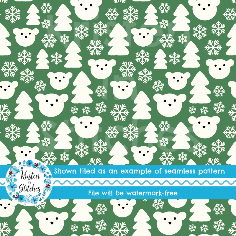 Snowy Polar Bear Forest Seamless Pattern, Pine Green