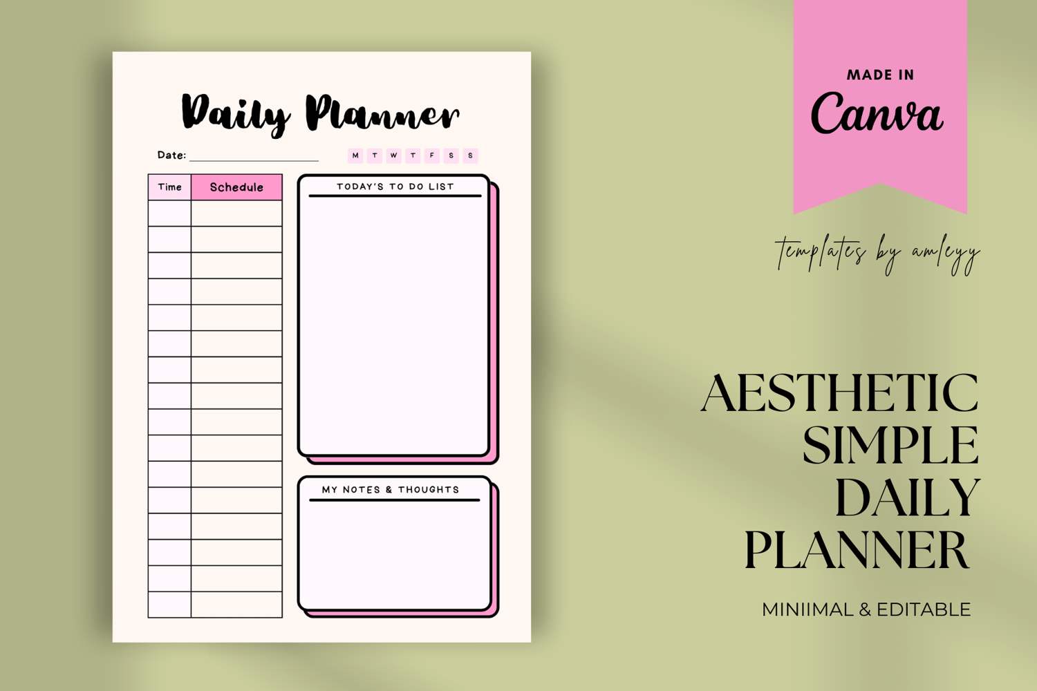 Simple Aesthetic Daily Planner Template for Canva | Minimalist Printable & Digital Planner Page