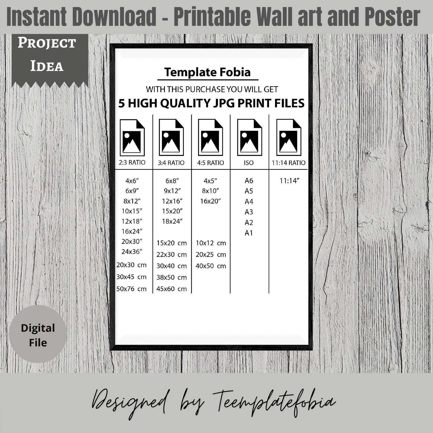 The files are large, you can easily print smaller in size. All the files are send in Hi-Res 300 DPI, this will ensure that you will receive a high quality printing. Depending on the format, print / photo may differ slightly.