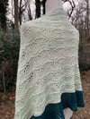 I wanted to design a lace shawl that was simple enough for the beginning lace knitter to tackle but engaging enough for the more experienced knitter enjoy making. With Inner Light I’ve created a crescent shawl that does just that. Working with three skeins of DK weight yarn most knitters will fly through this project as the lace repeats keep you interested enough to hold your attention without being so complicated that you can’t relax while enjoying some TV knitting. Beginning lace knitters will find that the repeats of lace quickly become familiar as the pattern emerges into an easy to read, intuitive design.