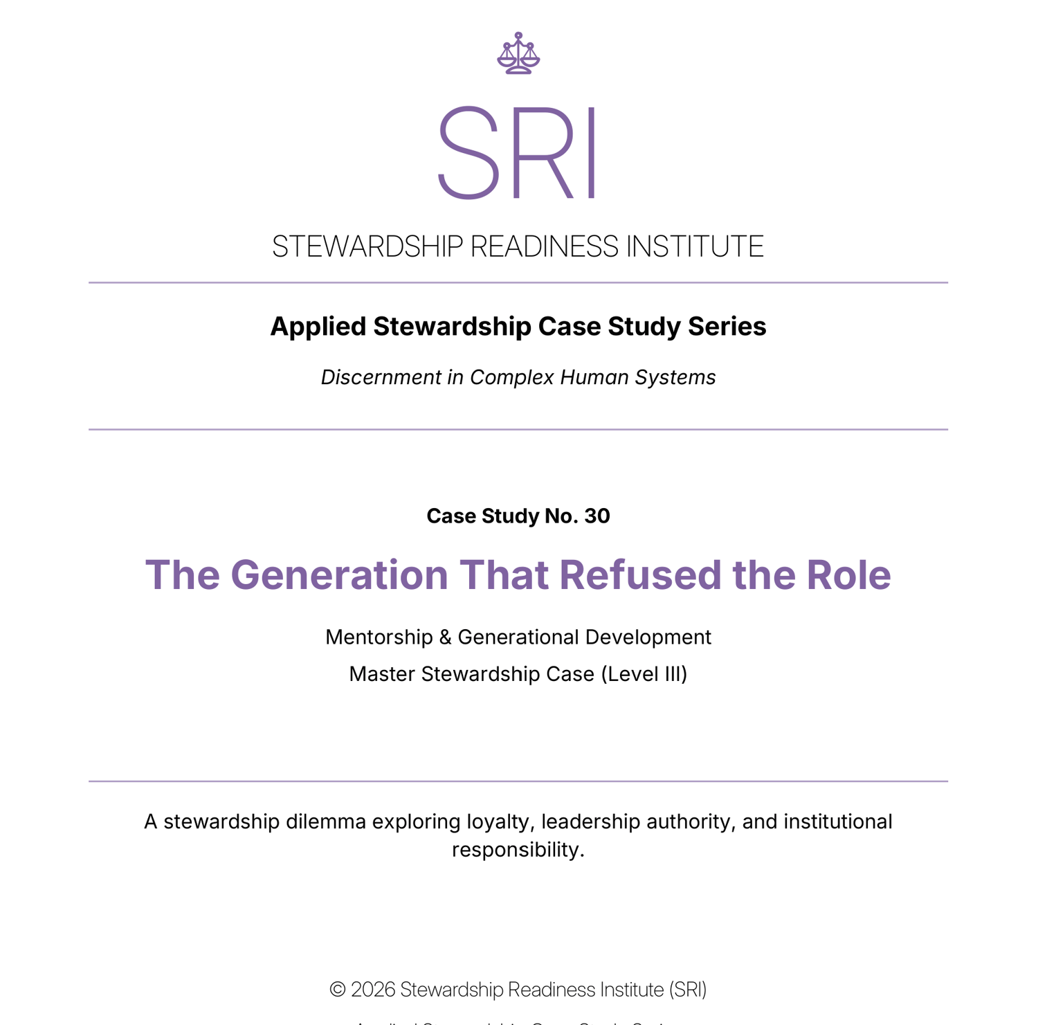 Case Study 30 – The Generation That Refused the Role explores a leadership dilemma where succession is declined. This case invites reflection on underlying system dynamics, hidden incentives, and the often-unseen forces shaping behavior. Through this lens, leaders are challenged to move beyond surface-level responses and engage the deeper patterns influencing outcomes, strengthening both clarity and long-term stewardship capacity.