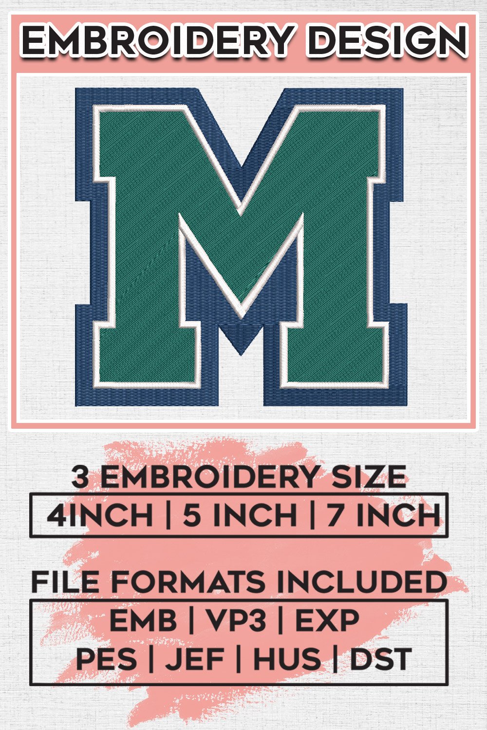 Mercyhurst Lakers Football Team M Logo Embroidery Designs, NCAA Mercyhurst Lakers Machine Embroidery Files, NCAA Logo embroidery designs, Ncaa Mercyhurst Logo, Digital Download